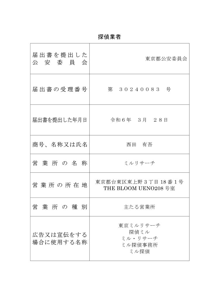 探偵ミルリサーチ概要